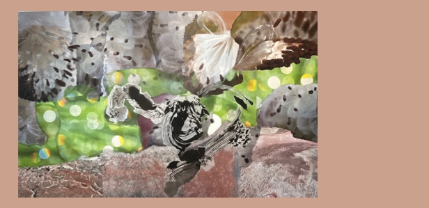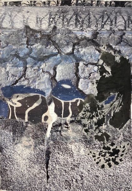 Collagen, Fotografiefragmente, Zeichnung, Acryl,